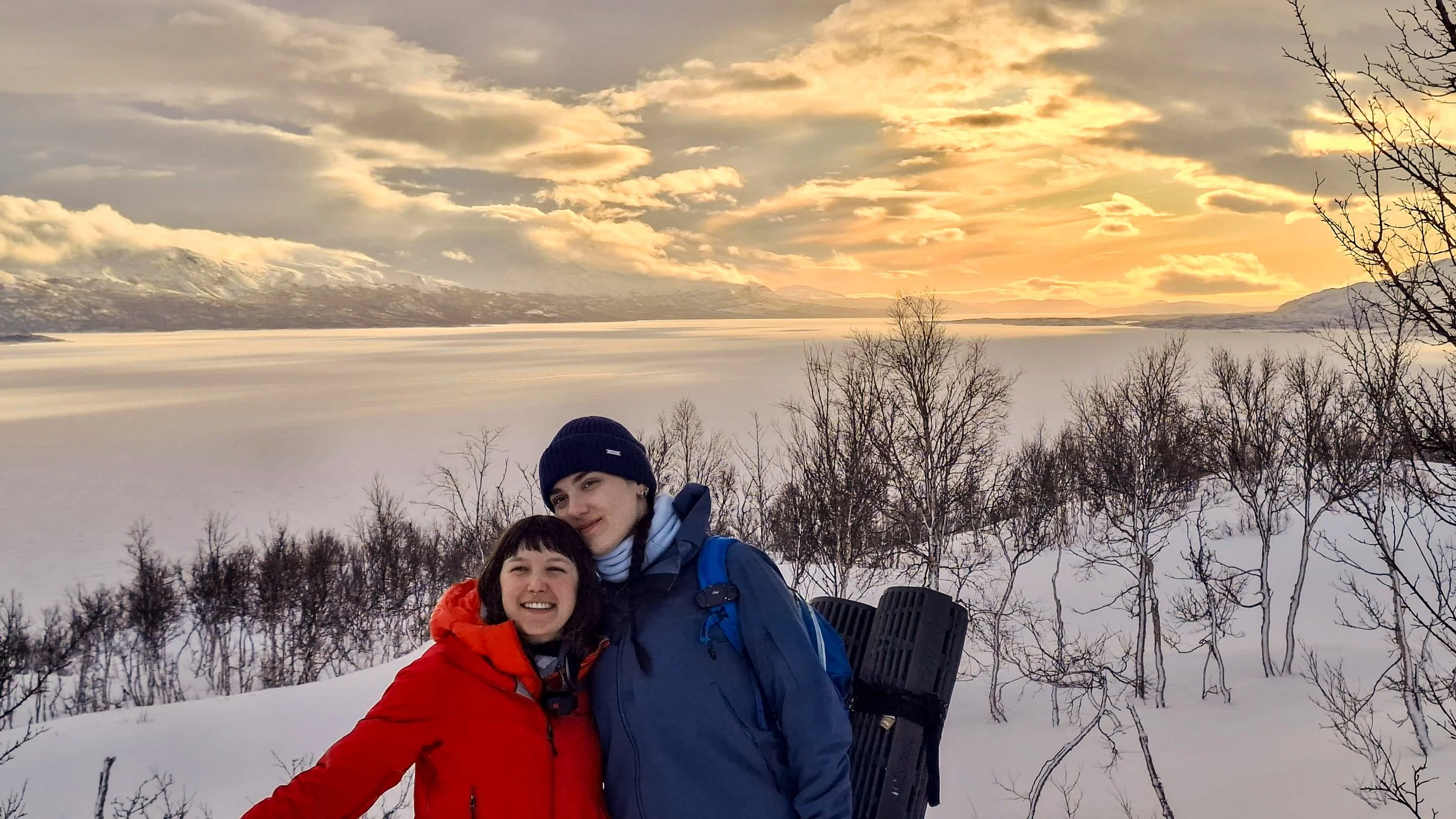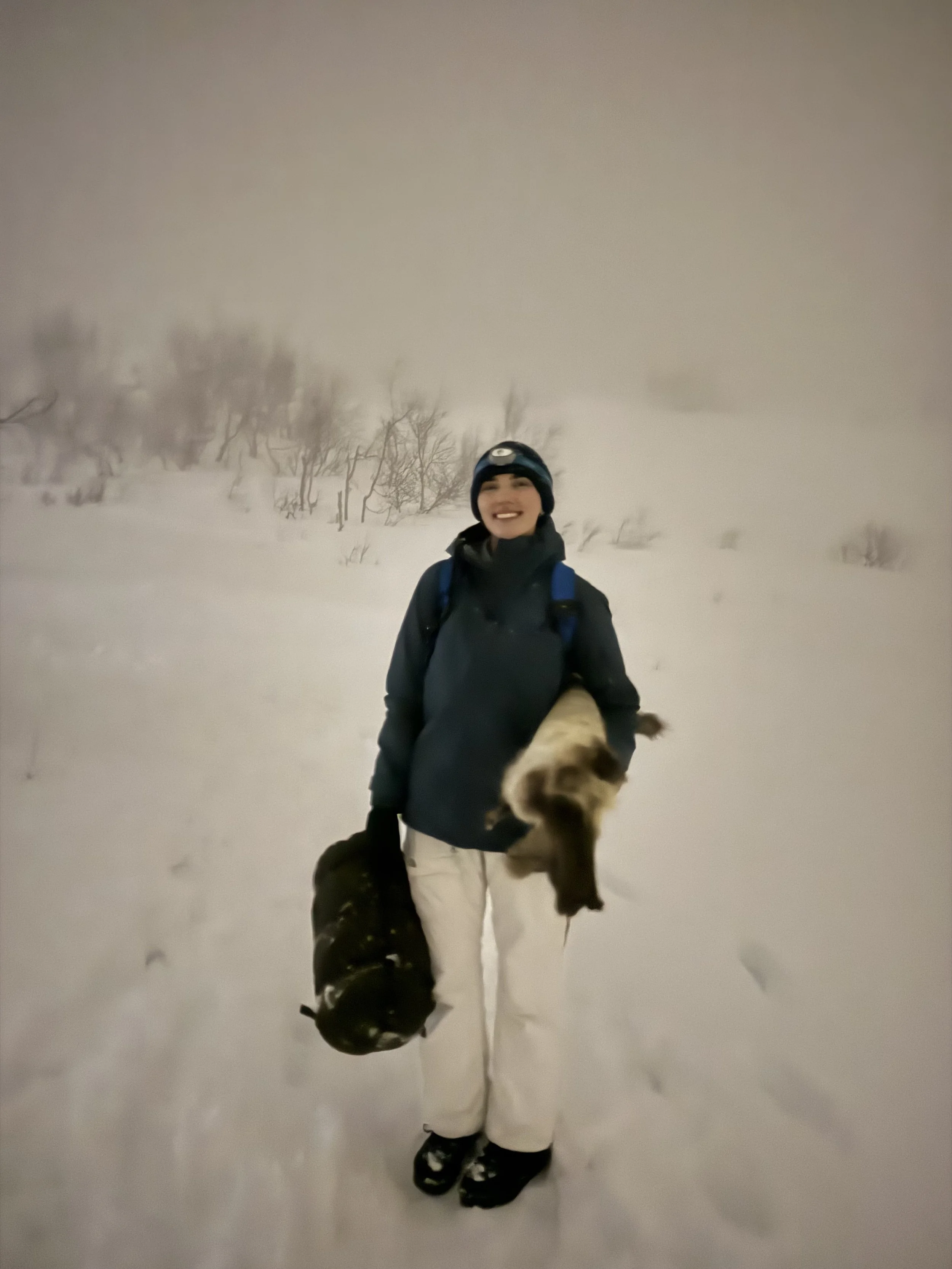 Friday was supposed to be my “chill” day, as I only had an activity in the evening. However, I did tell Oliver that I would do something fun with him in the morning since we didn't have anything official planned. However, our “chill” morning was definitely anything but that. Oliver called me, and he had gone up to the reception to ask what fun things we could do, and the lady suggested that we go cross-country skiing. Now, I have been downhill skiing for pretty much my whole life, but I have never even touched a pair of cross-country skis, so I was very hesitant at first. Oliver has cross-country skied for most of his life, so he was definitely already a pro. I warned him that I would be a beginner, but he pushed me to try it anyway. Even though it was an extremely steep learning curve for me, I am so glad that he convinced me to go because it was one of my favorite activities I have ever done. It was so frustrating to get the hang of, but it was so rewarding. When we finally got above the steep hills and made it out into the backcountry, the views were absolutely stunning. You could see all of Björkliden and all of the neighboring mountain ranges! I fell probably about 10 times, but I learned something new and challenged myself! And according to Oliver, I picked it up extremely well for a beginner! Later that evening, we left for our arctic survival skills camping night. We hiked about 45 minutes into the backcountry and put our skills we had learned the previous day to the test. We built our own shelter using tree branches, a tarp, a shovel, and a lot of snow. We found the perfect spot, and our shelter turned out pretty awesome! That night, we slept under our tarp tent in a sleeping bag on top of some reindeer fur. The weather that night was honestly pretty bad. It was whiteout conditions with very strong winds, but that only added to our experience! Even though most of us didn't sleep particularly well, it was a lot of fun and definitely a once-in-a-lifetime experience!